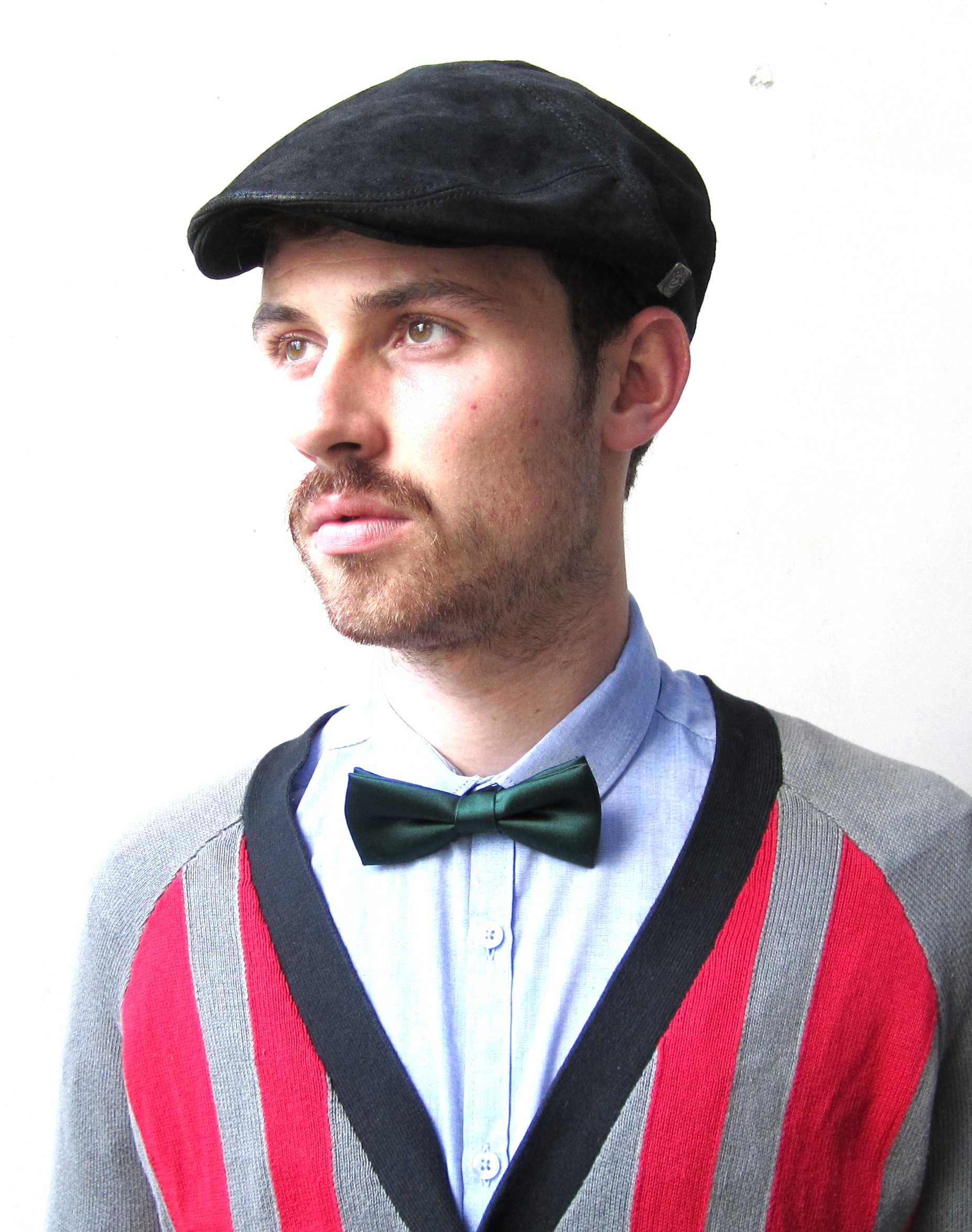 - Red soft faux suede under peak