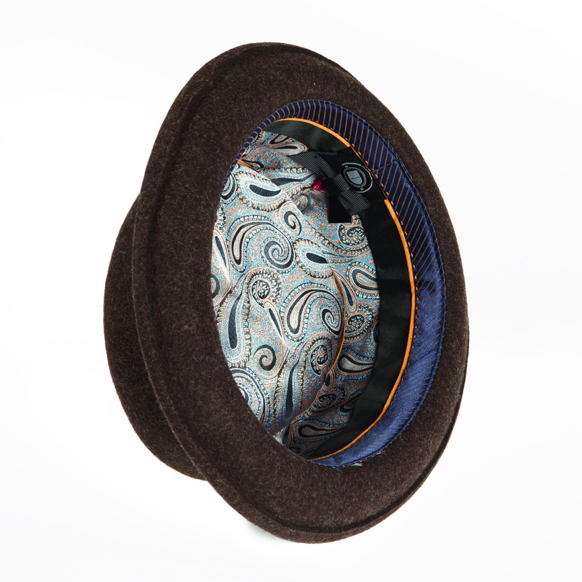 - Top crown, brim and the band made with brown melton wool