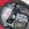 - Red soft faux suede under peak