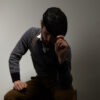 Black cotton sweatband with beige edge binding