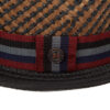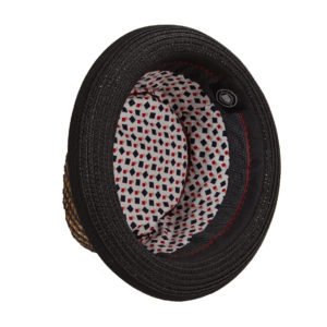 Hat brim is braided. Bound edge with mini piping.