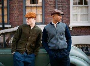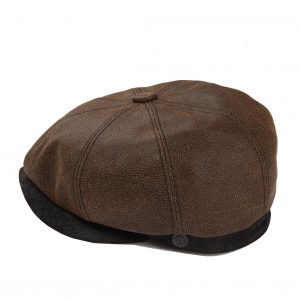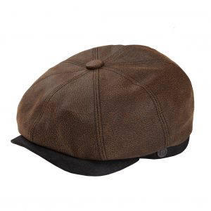 - Brown leather peak, button and back fillet